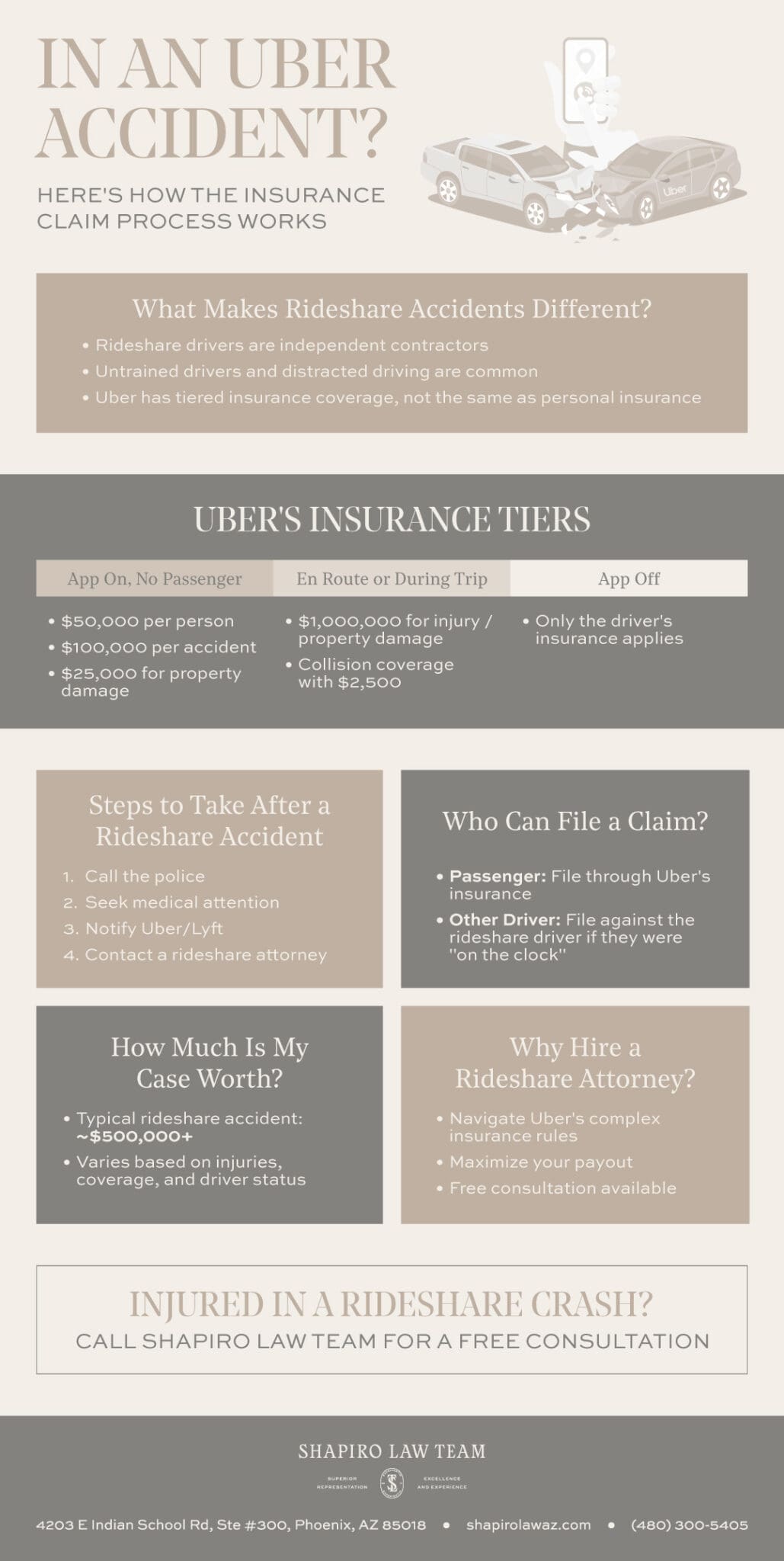 Continue reading to learn how the insurance claims process works after a rideshare accident and how Shapiro Law Team can help.