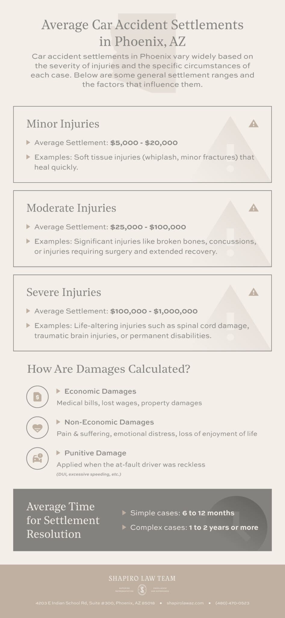 Different factors affect auto accident settlements in Phoenix. From economic to non-economic damages, here are the biggest categories that will influence the amount of compensation you can receive: