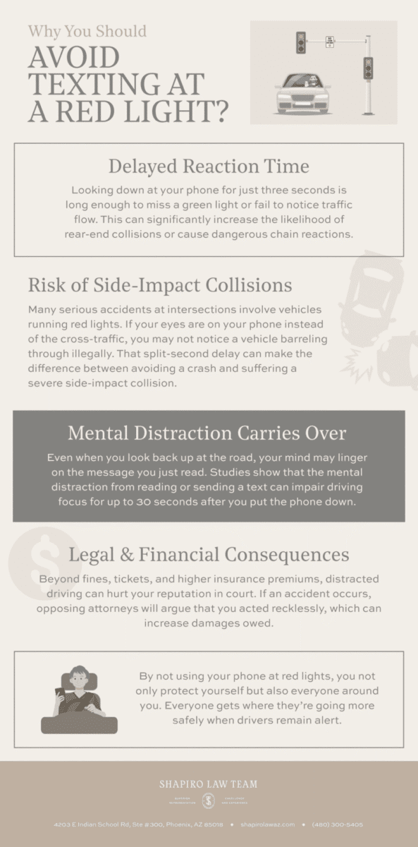 In short, being on your phone at a red light is not a harmless habit. It puts your safety, your finances, and your driving record at risk.